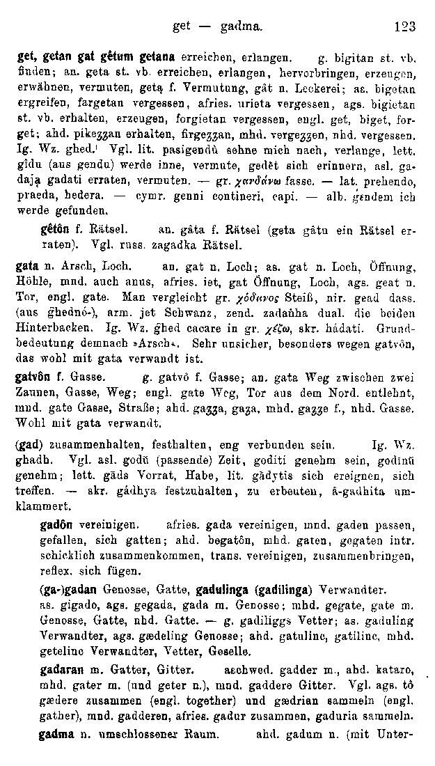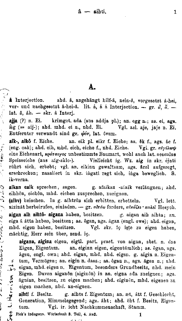 Title: Wörterbuch der Indogermanischen Sprachen: Dritter Teil: Wortschatz der Germanischen Spracheinheit Author: August Fick with contributions by Hjalmar Falk, entirely revised by Alf Torp Year: 1909